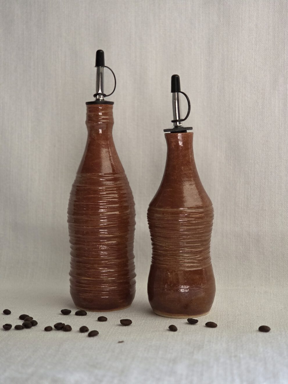 Oliefles in terra-roest kleur, mooi als set.
