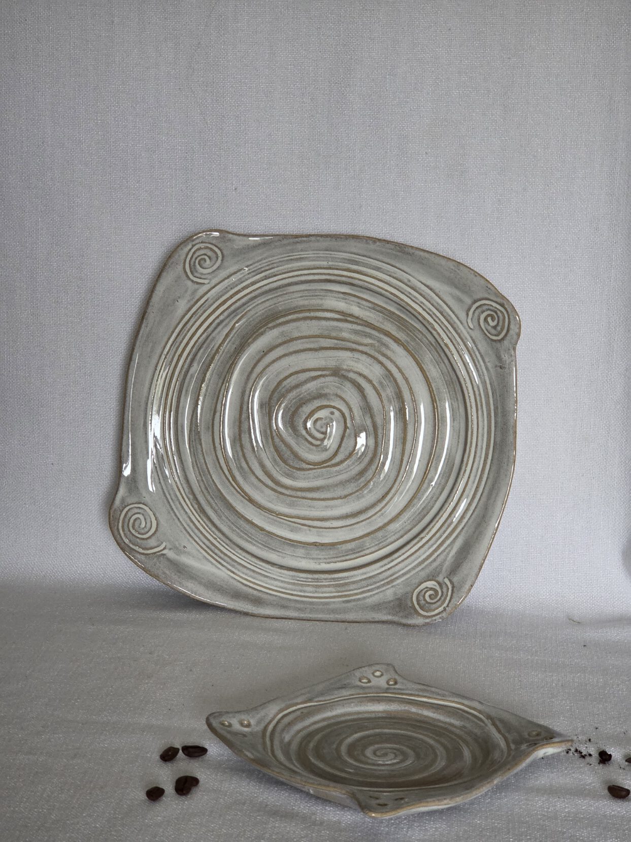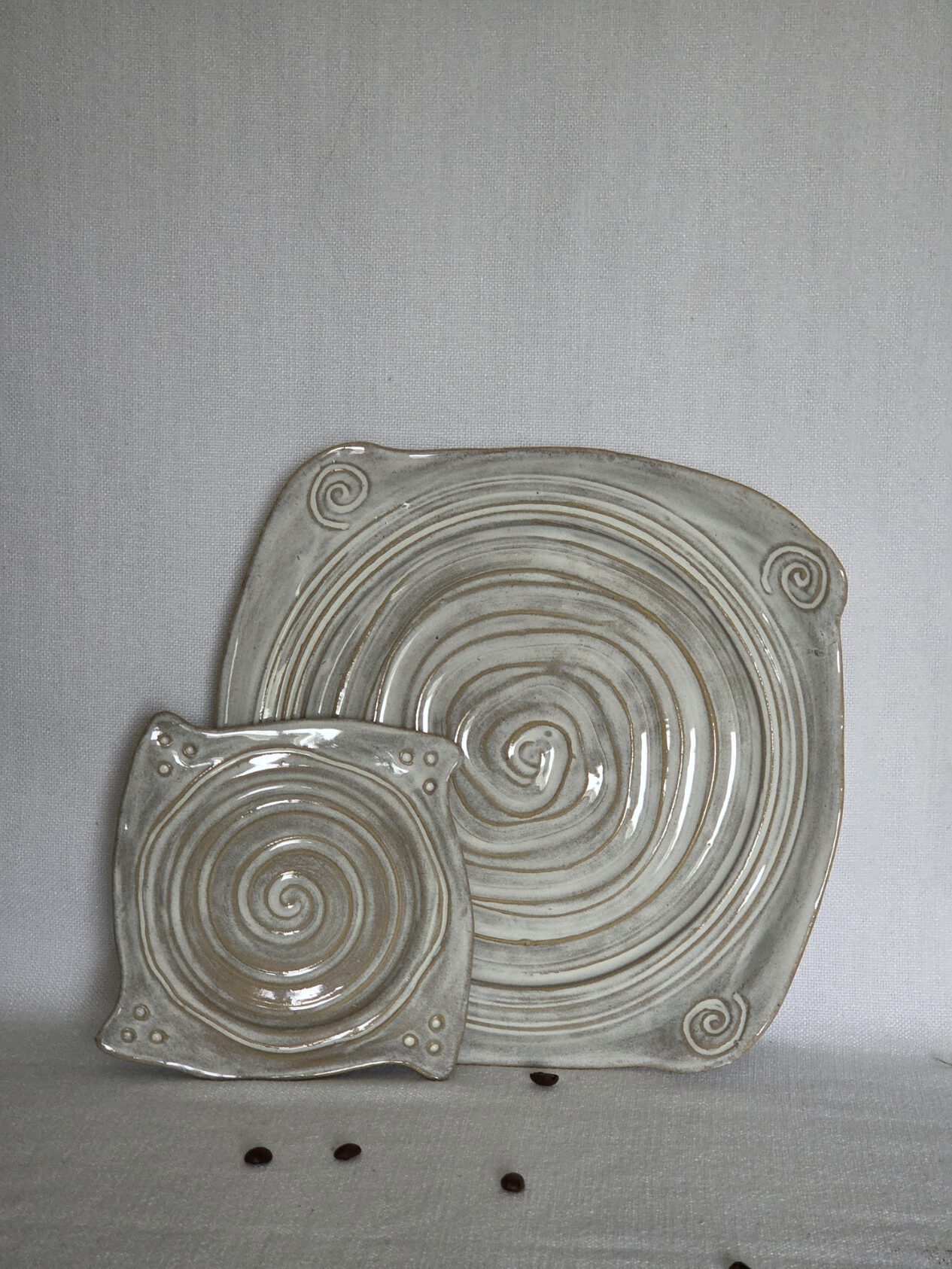 Schaal vierkantig honingwit glazuur 30 cm